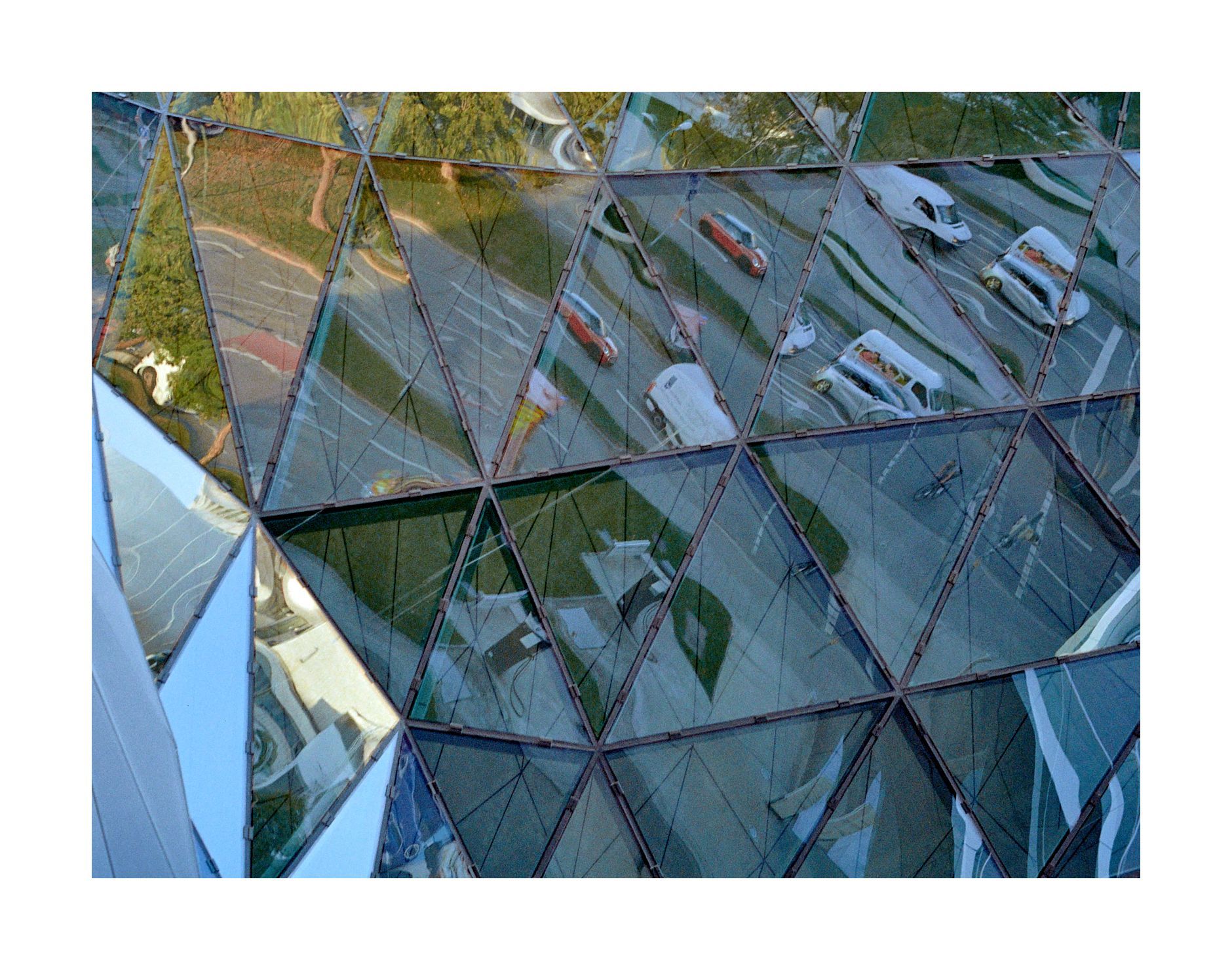 Trotzalledem entstehen zwei Fotos, die mir mit etwas zeitlichem Abstand von diesem Tag der Nemesis, so gefallen, dass sie ins Projekt 12 - Filmfotografie gelangen. Bei den "olympischen Dächern" ist der Grund dafür die einfache und sehr abstrakte Komposition.