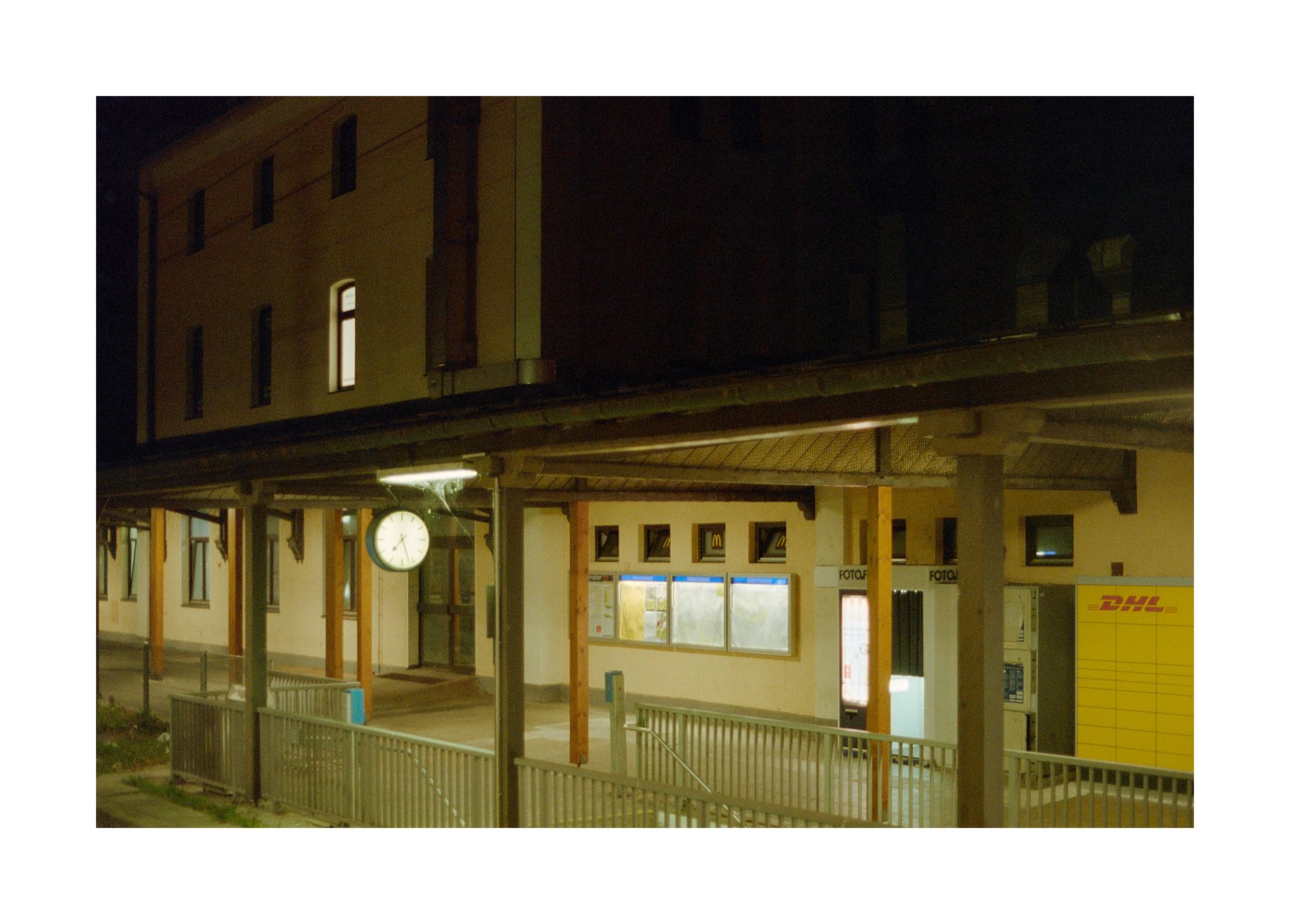 Ich knipse in die Dunkelheit des Bahnhofs. Dabei entsteht ein Bild des Bahnsteigs, das meine Gefühlsregung in diesem sehr gut wiedergibt: Grelle Spitzlichter und viel Dunkelheit! Dazu ein rot leuchtendes Haltsignal... Rien ne va plus!
