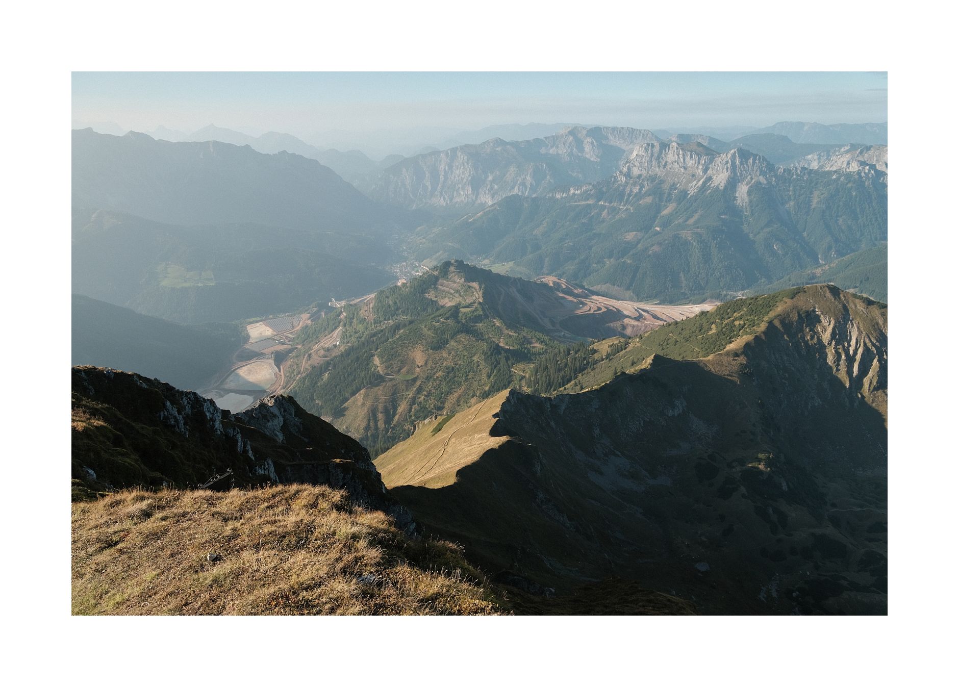 Diese Einschätzung war richtig. Der Zickzackweg trifft auf den Verbindungsgrat zwischen Reichenstein und Reichensteinhütte. Nach zwei Stunden und einer Minute ab Präbichl stehe ich auf dem Gipfel. Fast eine halbe Stunde verbringe ich dort allein und lasse die umliegenden Berge auf mich wirken. Mittlerweile kann ich schon einige Gipfel aufsagen. Vielleicht werde ich in der Steiermark noch heimisch...